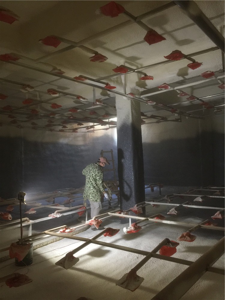 4)混凝土基層不得有明水,當(dāng)混凝土基層有漏水現(xiàn)象時(shí),應(yīng)先找出漏點(diǎn),并用堵漏材料進(jìn)行堵漏、補(bǔ)強(qiáng)后再噴涂施工。